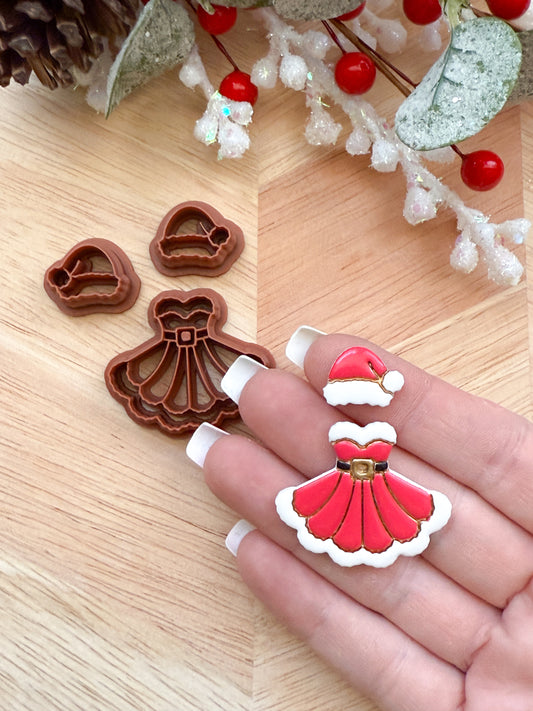 MS CLAUS DRESS & HAT DANGLE | CHRISTMAS HOLIDAY | CLAY CUTTER