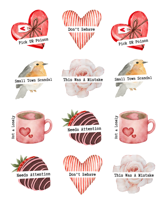 SARCASTIC ANTI-VALENTINE TRANSFER PAPER & CUTTERS | MAGNET STATEMENTS | POLYMER CLAY CUTTERS