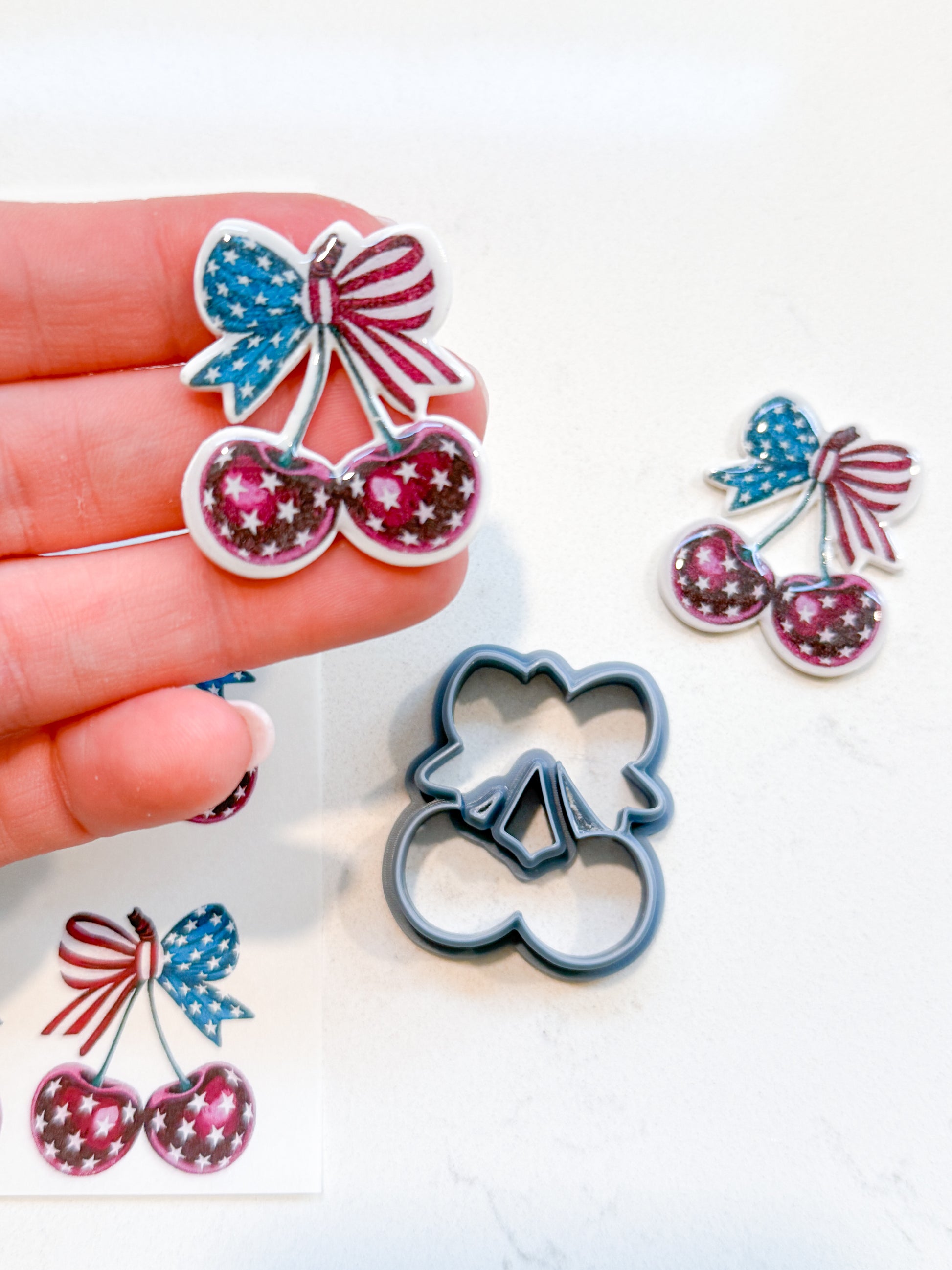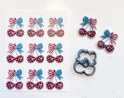 AMERICAN CHERRIES TRANSFER PAPER & CUTTER | PCC SET 009 | TRANSFER PAPER | CLAY CUTTER