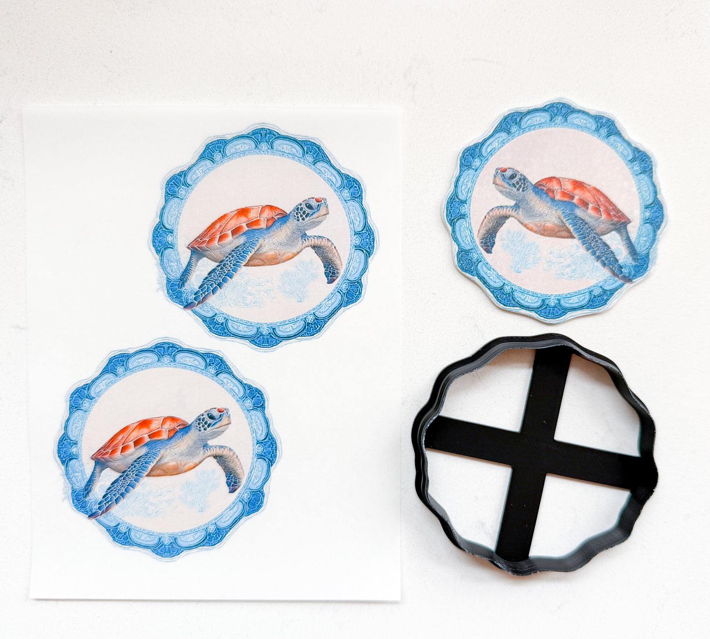 COASTAL SEA TURTLE MAGNET TRANSFER PAPER & CUTTER | PCC SET 003 | TRANSFER PAPER | CLAY CUTTER
