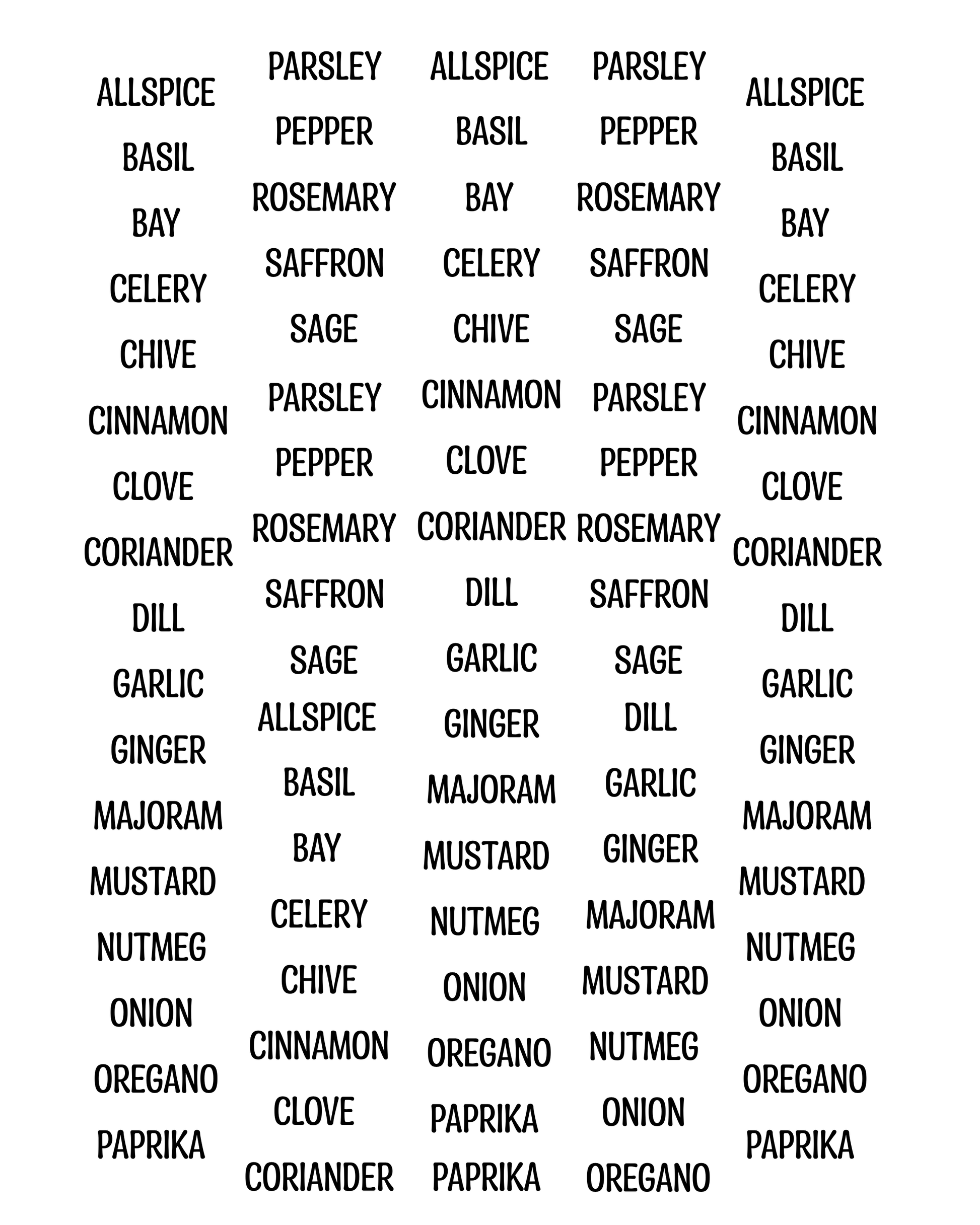 Each house measures 1.5 inches in height. There are 6 different house styles. Space open for spice name. Transfer paper of names sold seperately. Transfer paper will have 4 sets of spice names on 1 sheet (4x5in)