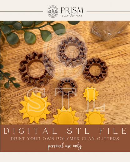 Sunshine Sun STL File | 4 Sizes | Digital Instant Download | 3D Printing STL File | Polymer Clay Tool | Polymer Clay Cutter STL File