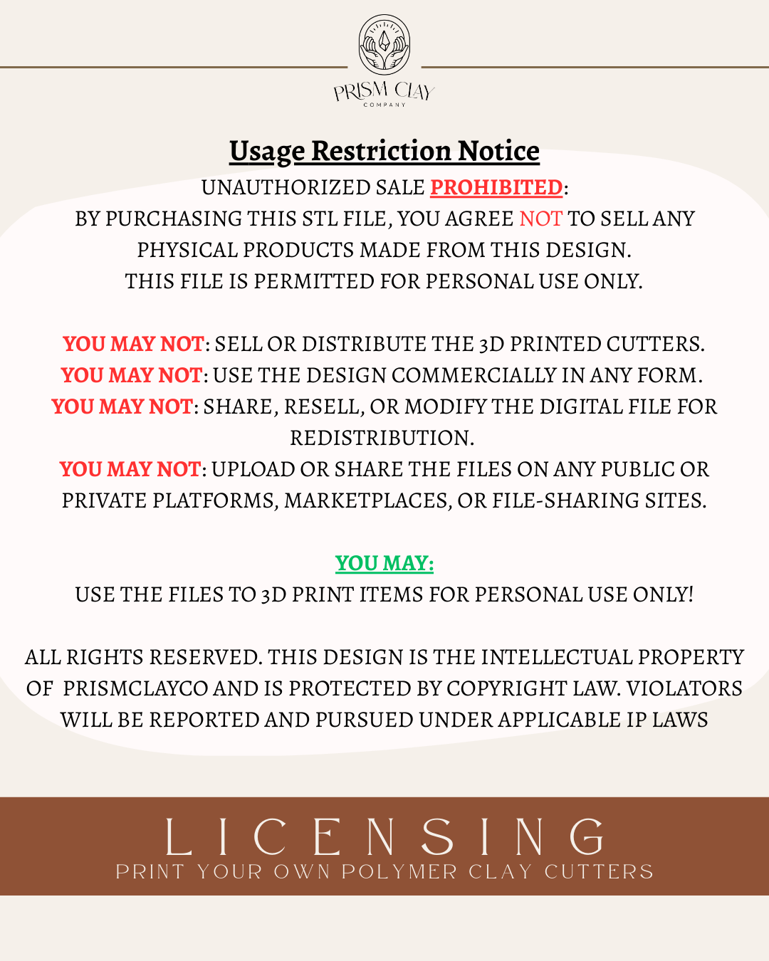 ‼️All rights reserved. This designs is the intellectual property of Prism Clay Co and is protected by copyright law. Violators will be reported and pursed under applicable law.